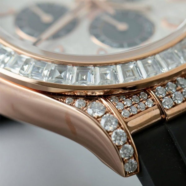 ベゼル:固定ベゼルはモアサナイトダイヤモンドとサファイアで飾られ、本物のデザインを反映しています。