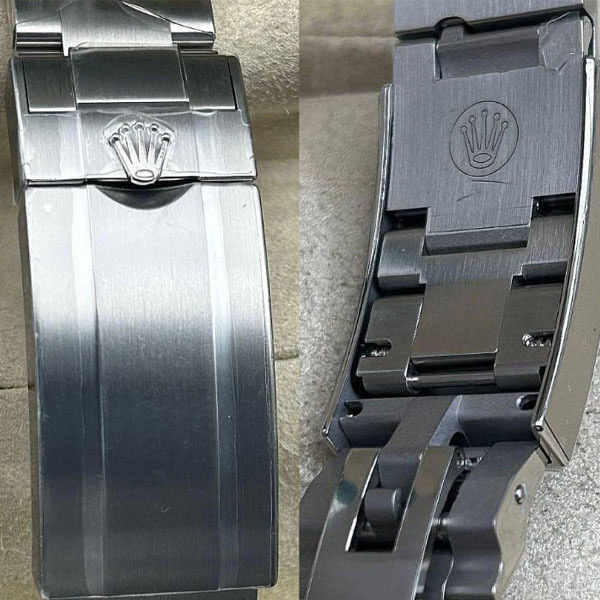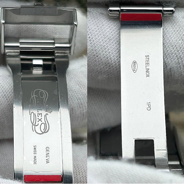 6時のところにはレザー刻印によるロレックス王冠ロゴがあります。