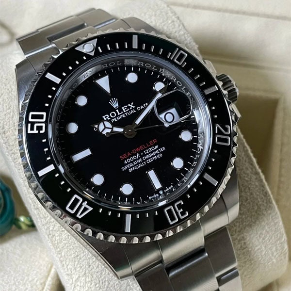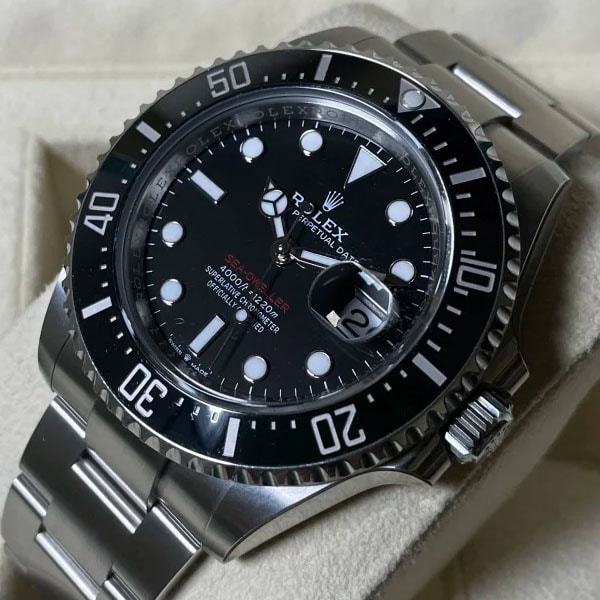 ダイアルにはその特徴的なデザイン要素の一つである目立つ赤の「SEA-DWELLER」という文字が含まれています。