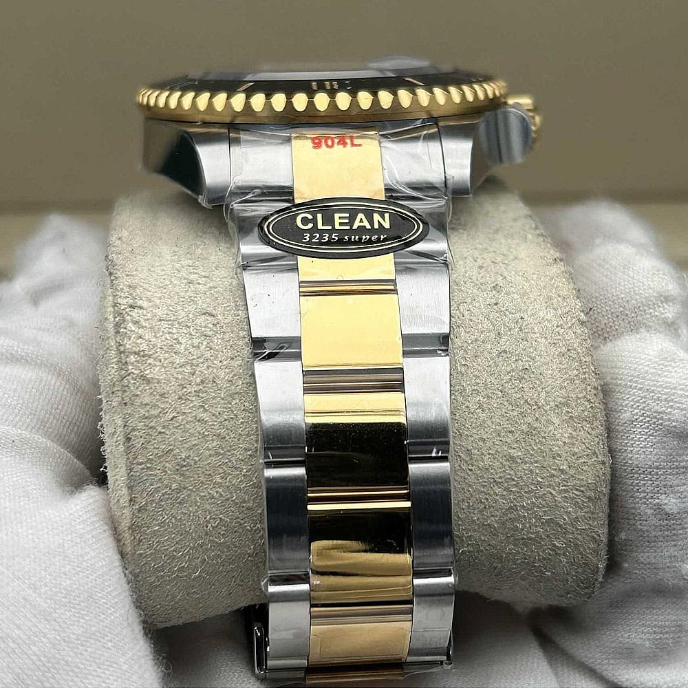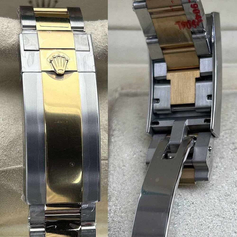 ケース:クリーンファクトリーにより、最高な伝統工芸を活用し、18kイエローゴールドコーティングを施された904Lステンレススチールケースを発表し、そのモノブロック構造は本物ロレックススチールとそっくりです。43ミリケースはスリームなラグを備えており、ラグ幅は22ミリで、正規品と一致しています。スクリュー式ケースバックと巻き上げリューズを備えており、RehautリンクにはROLEXROLEXレザー刻印があり、DLCスクラッチプロティングコーティングも施されております。寸法と重さも完璧に正規品と一致し、すべてのパーツはロレックス正規品との交換性を確保しています。