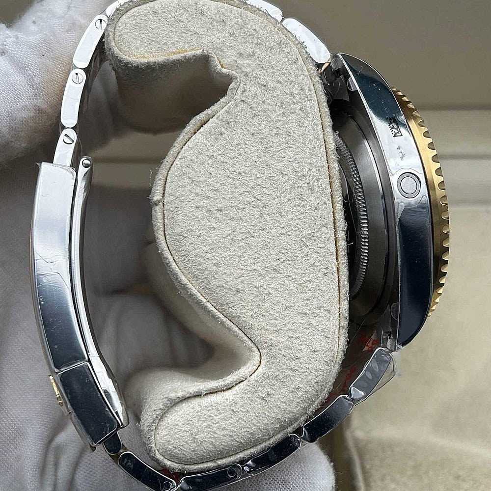 ベルト:フラートな3ピースリングを備えたオイスターデザインのブレスレットは正規品の22ミリケースラグと幅広のブレスレットにマッチします。18Kイエローゴールドコーティングされた904LステンレススチールにはDLCスクラッチプロティングコーティングが施されています。しっかりとしたネジ山、グライドロックダイバーズエクステンションシステムを含む折りたたみ式オイスターロック安全スクラップも備えています。