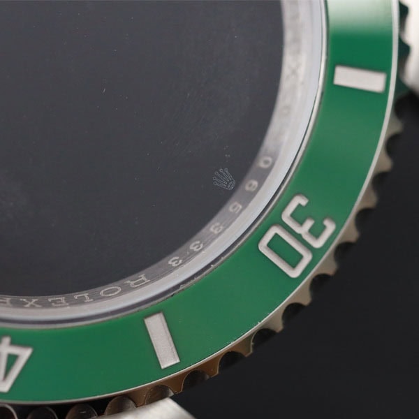 6時のところにはレザー刻印によるロレックス王冠ロゴがあります。