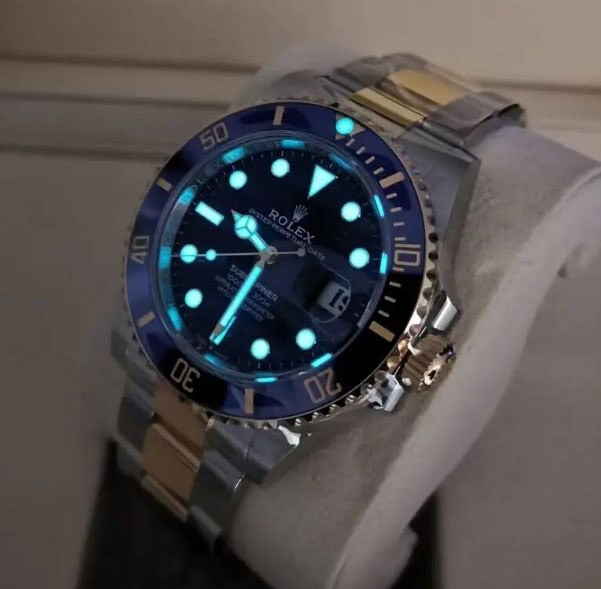 ブルーのスーパールミノバコーティングされたパールのデザインは本物のロレックス