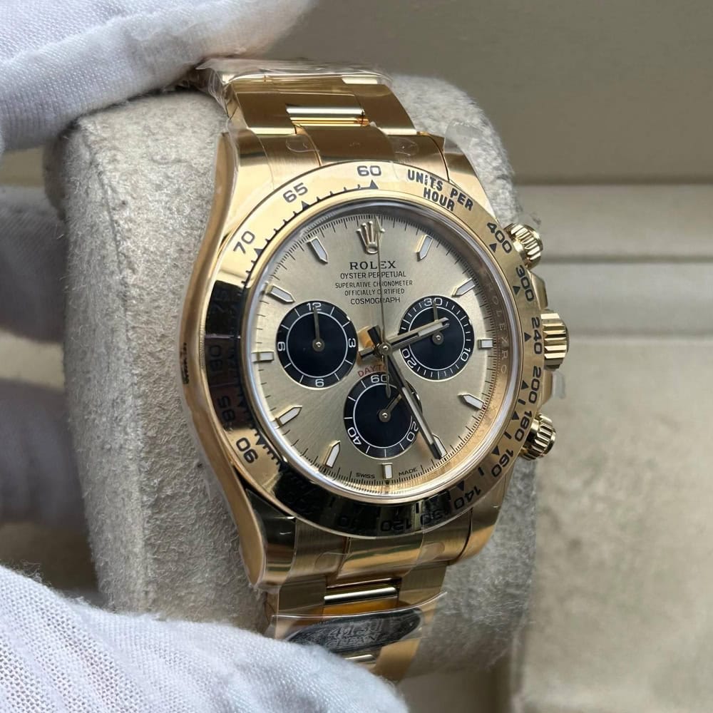 ベルト:ベルトは平たい3ピースリンクを象徴とするクラシックなオイスターデザインを採用されており、18Kイエローゴールドコーティングされた904Lステンレススチールで作り出されており、DLCスクラッチプロティングコーティングも施されています。ベルトはしっかりとしたネジ山と5 mm コンフォート エクステンション リンク(イージリンクとも言う)を備えた折りたたみ式オイスターロック安全クラスプを含まれています。