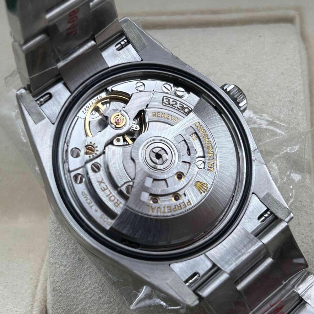 ムーブメント:常磁性青色合金パラクロム ヘアスプリングと高性能パラフレックス ショックアブソーバーを備えたクローン ロレックス 3230 スイス製ムーブメントが搭載されています。正しいシリアル番号と内側と外側の同一のマーキングが含まれており、オリジナルと見分けがつかないです。ムーブメントすべての部品は正規品と交換可能です。パーペチュアル ローターにより、自動機械式双方向自動巻きを実現しています。スムーズなスイープ秒針は 28,800 VPH (4Hz) で動作し、精度は (-4/+6 秒/日) 以内で、COSC 認証制限内に十分に収まり、パワーリザーブは約70時間に達します。