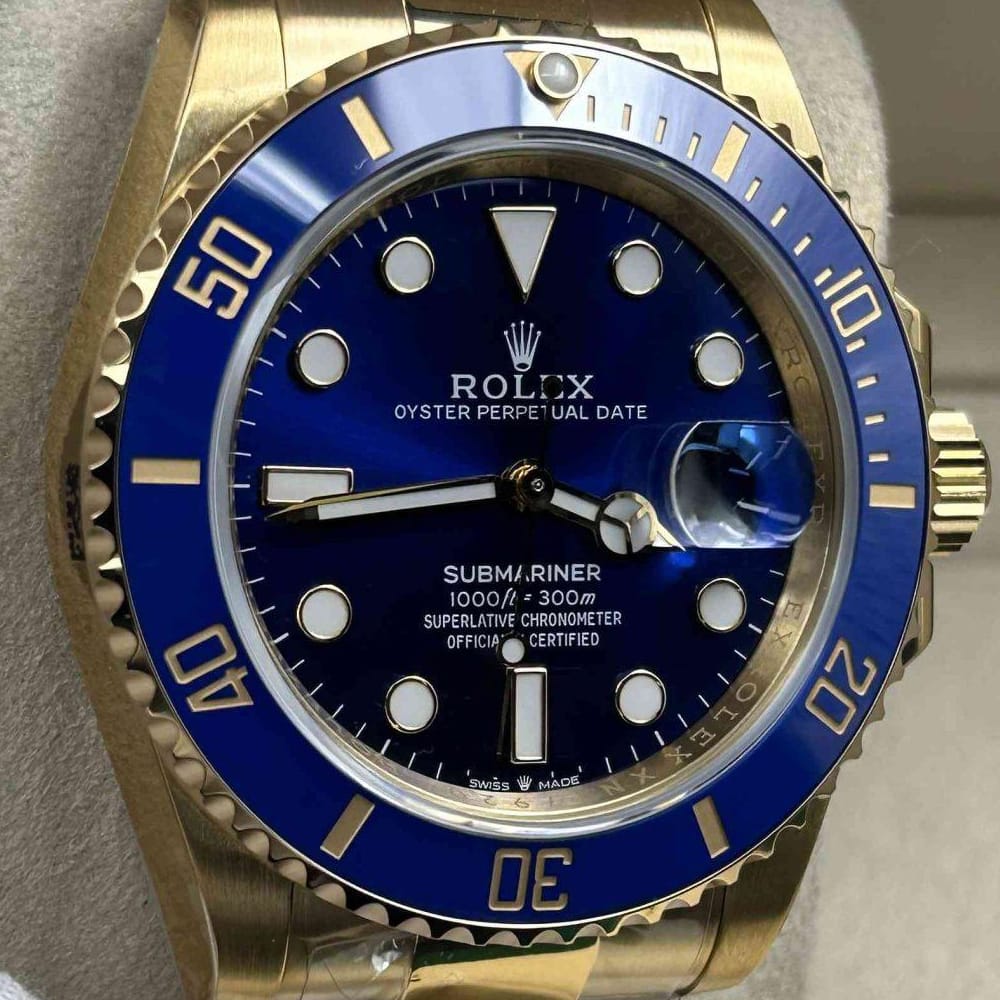 ベゼル:ベゼルはクリーンファクトリー精巧な仕上げを表しています。120クリック、逆回転防止、ブラックセラミックインサートで作り出されており、18Kイエローゴールドコーティングの数字を備えています。スーパールミノヴァのブルーパールがロレックス正規品のデザインとの調和を際立たせています。